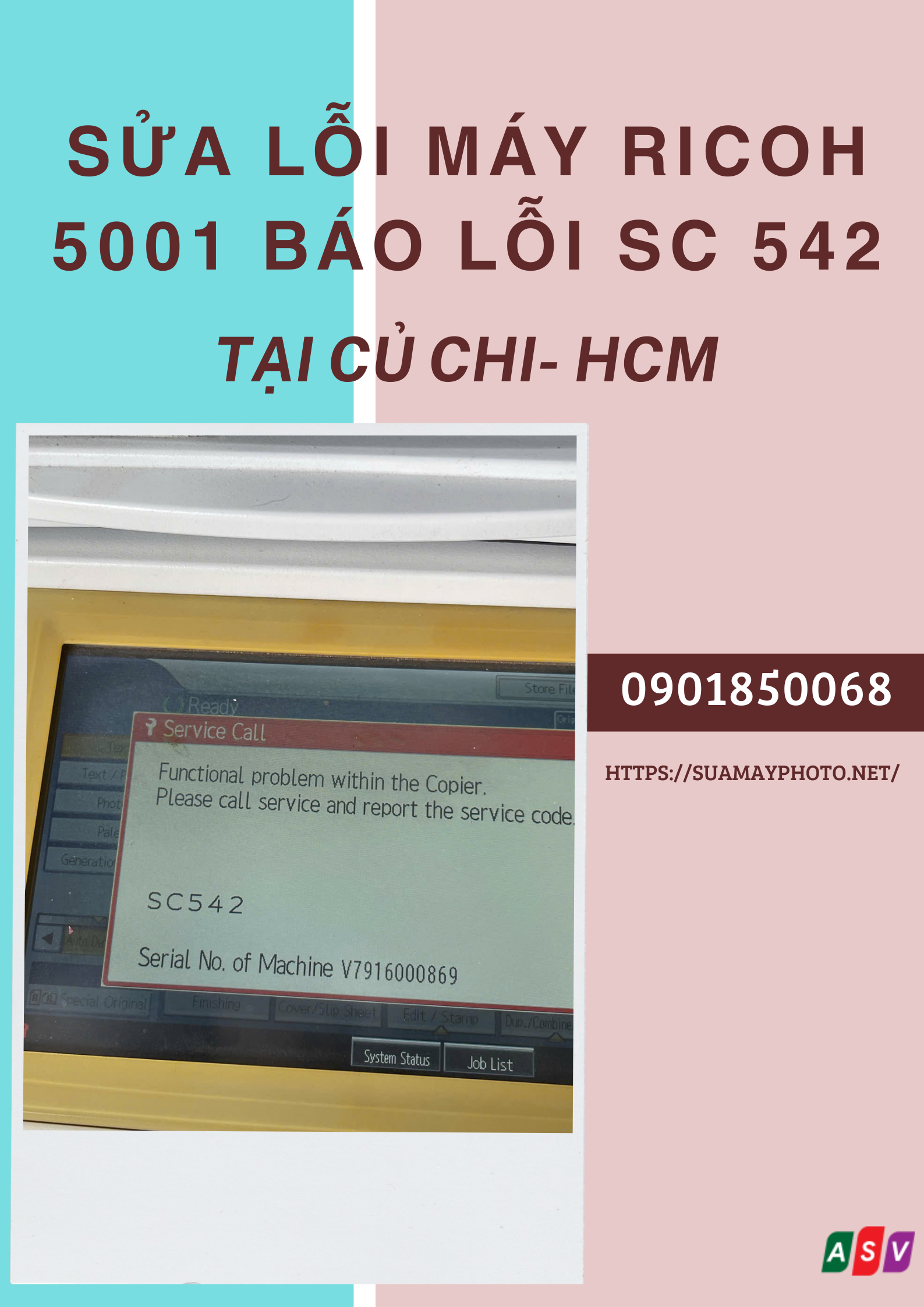 Sửa lỗi SC 542 máy Ricoh 5001 tại Củ Chi TP.HCM – Khắc phục nhanh trong ngày - LIÊN HỆ HOTLINE: 0901850068